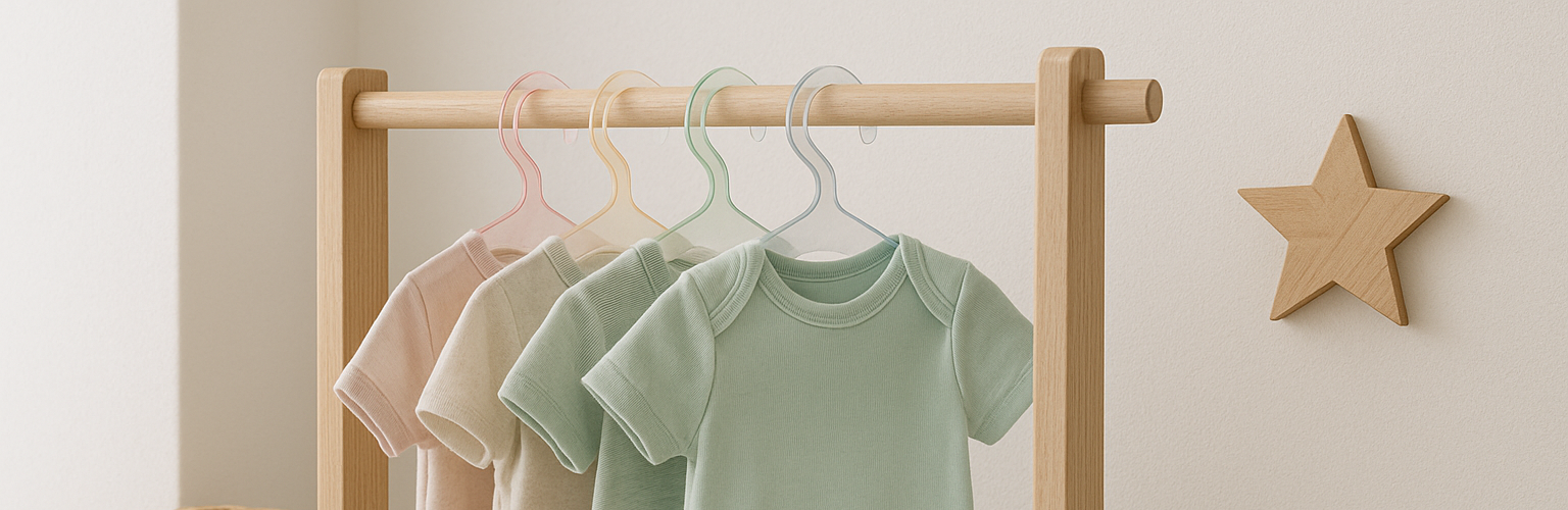 Wenn du eine Kombination aus luxuriöser Optik, Langlebigkeit und Benutzerfreundlichkeit suchst, sind Kleiderbügel aus Kunststoff eine hervorragende Wahl. Besonders unser Acrylglas in satinierten Pastelltönen eignet sich ideal für Baby- und Kinderzimmer. Die Bügel können individuell deinen Wünschen angepasst werden, von der Farbe bis hin zum Format.