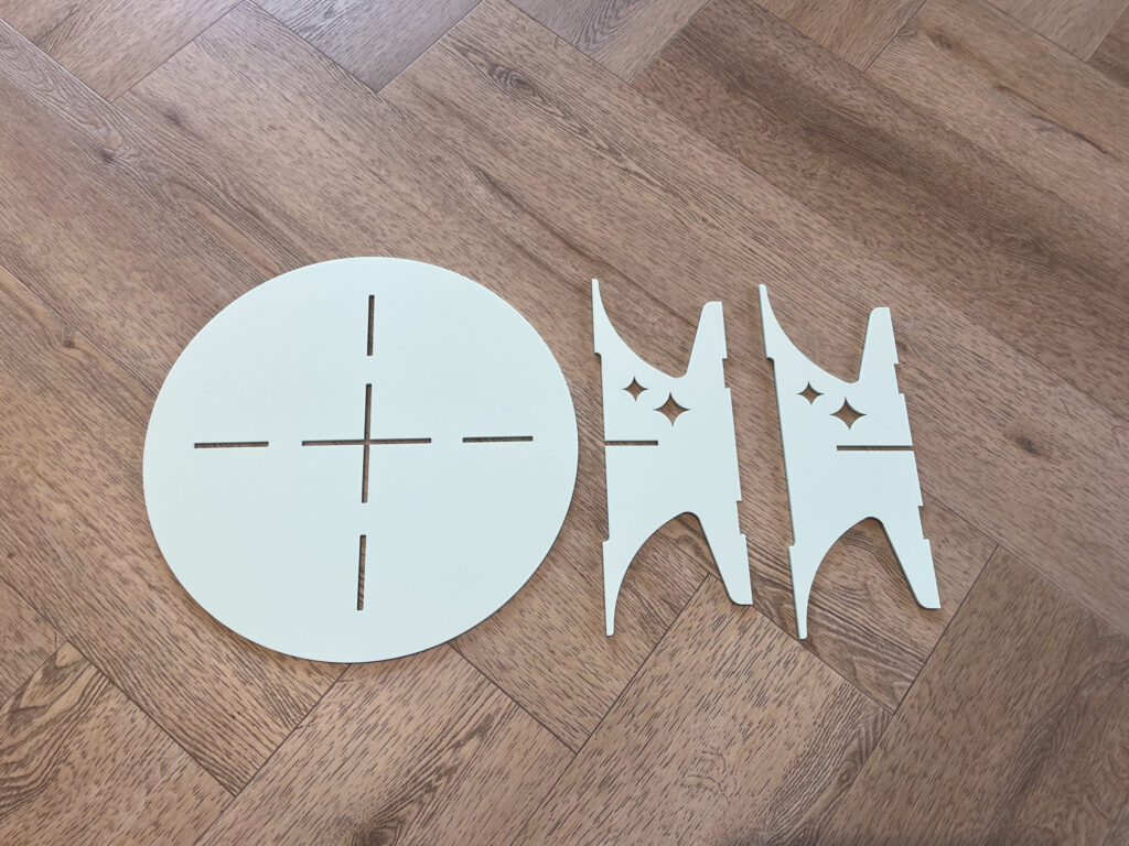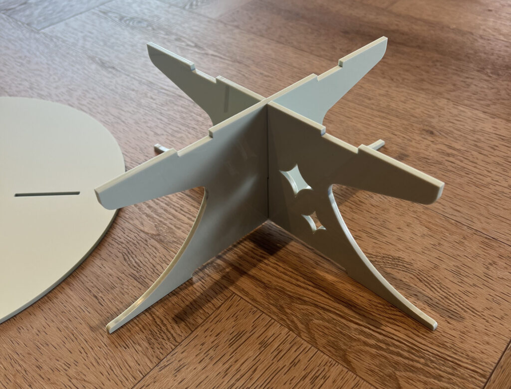 Das Zusammenbauen eines Acrylglas-Tortenständers ist überraschend einfach. Unser Tortenständer besteht aus drei Teilen: der Plattenfläche und den Stützfüßen. Du kannst die Teile einfach ineinanderschieben, sodass dein Tortenständer im Handumdrehen montiert ist. So kannst du den Ständer nach Gebrauch flach verstauen und sparst viel Platz.