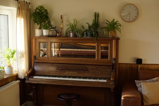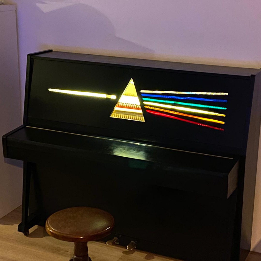 Carsten aus Berlin erhielt einen Anruf von seiner weinenden Frau: Es stand ein Klavier an der Müllhalde, das gerettet werden musste. Nach einer harten Arbeit, um das schwarze Keyboard in seinen Van zu wuchten, beschloss er, etwas Besonderes daraus zu machen. Er ersetzte die schwarze Holzfront durch eine transparente Acrylplattentechnologie, damit man das Innere des Klaviers sehen kann. So machte er aus einem Wegwerfklavier ein einzigartiges Möbelstück mit einem modernen Touch.